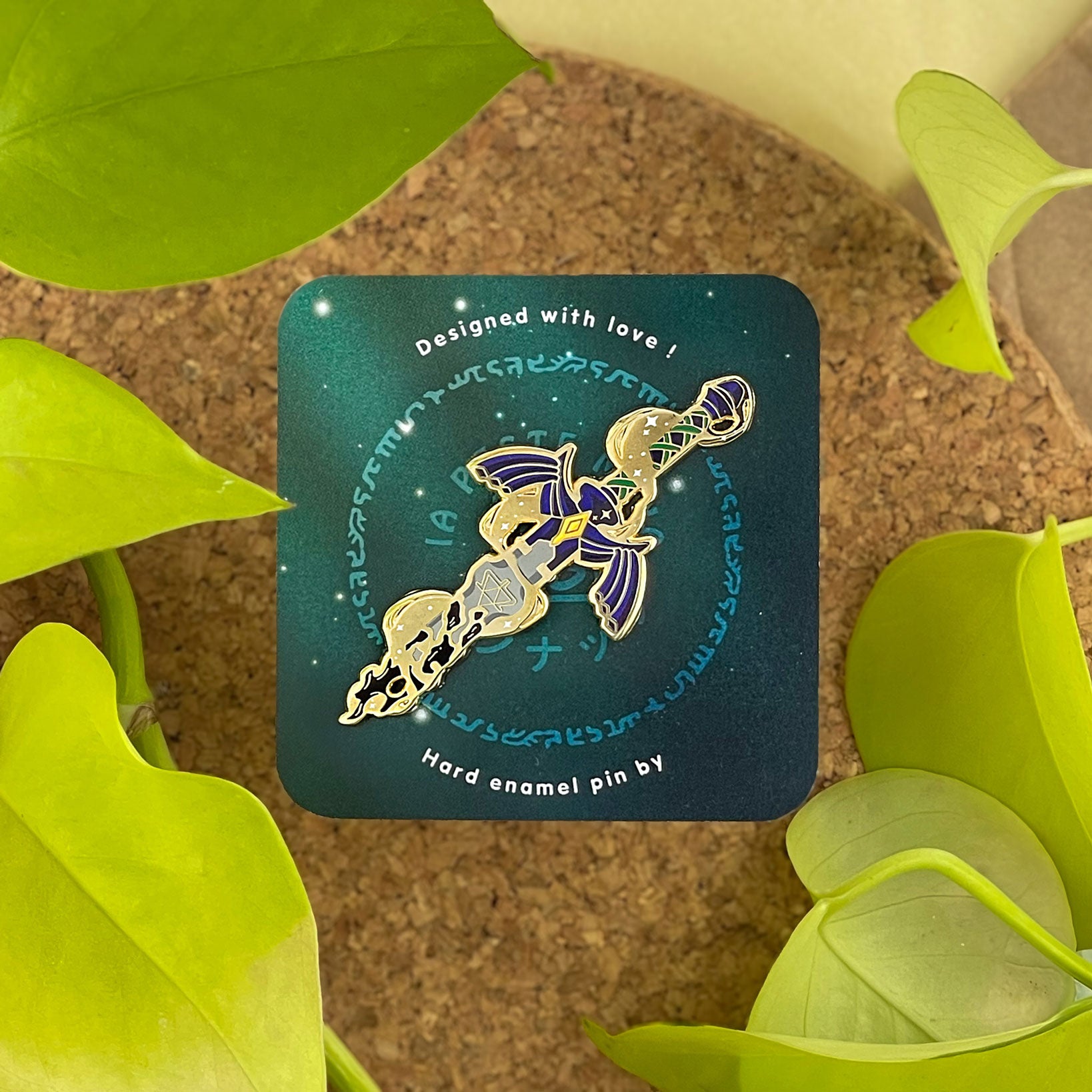 Ce pin émaillé représente la Master Sword en ruine, inspirée de Zelda: Tears of the Kingdom. Avec ses détails soignés et son plaquage or, il est parfait pour les collectionneurs et les fans de la saga.